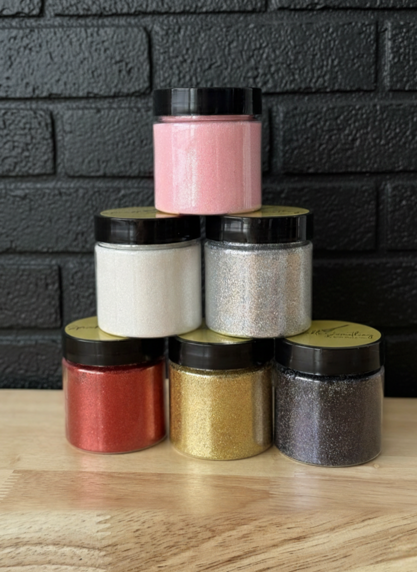 You’ve seen glitters, but never this large! These jumbo glitters are sure to last a while. Glitters are perfect for creating your own sprinkle blends, or other decorating decor as well. Comes in a variety of colors.